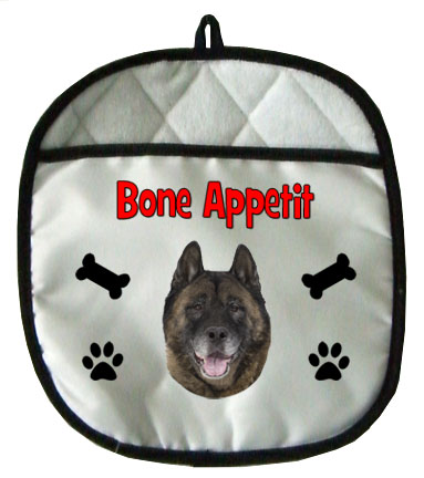 These soft, 100% terrycloth lined potholders have a heat-resistant black cotton palm, white poly top and a black cotton trim. Wonderfully decorated with your favorite Akita these oven mitts are a must for every household. Overall the potholders measure about 9 by 10.5. Wash in cold water.