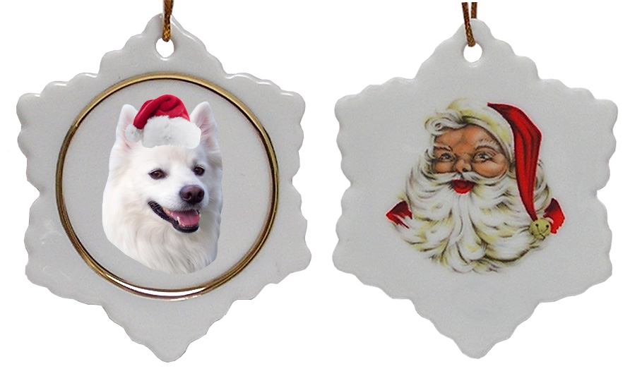 Ceramic Jolly Santa Snowflake Christmas Ornament - American Eskimo Dog