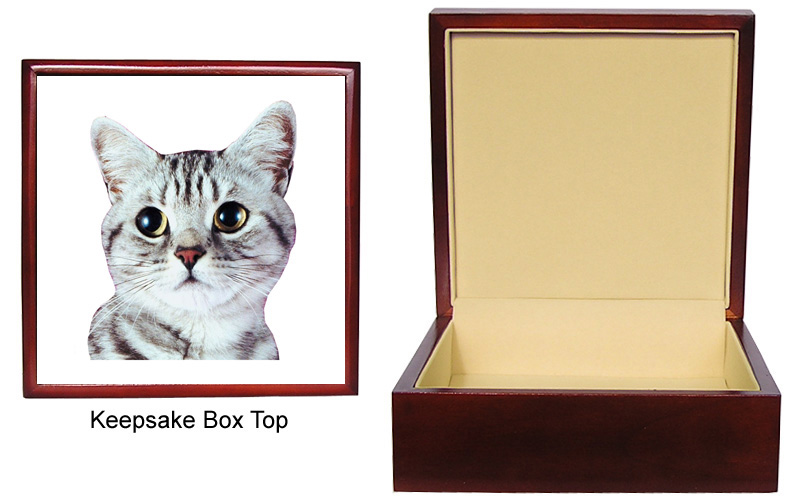 This felt lined wooden Keepsake Box gives American Shorthair Cat lovers an excellent way to store their jewelry, personal items and favorite things. The Rosewood box features a 6 inches American Shorthair Cat decorated ceramic tile in a hinged top. Great as a Gift! Actual box dimensions are 6.75 x 6.75 inches x 2.75 inches deep. Inside area is 5 7/8 x 5 7/8 x 1 1/2 inches deep.