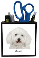 The wooden pencil holder features a colorful Bichon image and will make a great addition to your home or office. It has two big compartments with room enough to hold pens and pencils, fat markers, scissors, letter openers or whatever (accessories not included). The Bichon wooden pencil holder measures about 4.75 inches tall by 4.75 inches wide and has a satin rosewood finish. It also makes a great gift for the Bichon lover.