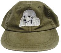 Show off your favorite breed with this durable, yet fashionable, kaki colored Poodle hat. The baseball cap features a full color embroidered Poodle rendering, and an adjustable leather strap on the back. One size fits all!!