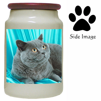 The Canister jar is a smaller version of our very popular British Shorthair Cat decorated Cookie Jar. These Canister jars are the perfect holder for small cat treats. Great as a gift, this British Shorthair Cat decorated Canister jar is just the right size to fill with people stuff such as coffee, tea or sugar and will compliment any kitchen. Measuring about 6 inches tall and 3.5 inches wide, the white ceramic canister jars are sealed tightly with a mahogany finished wood lid for the perfect touch.
