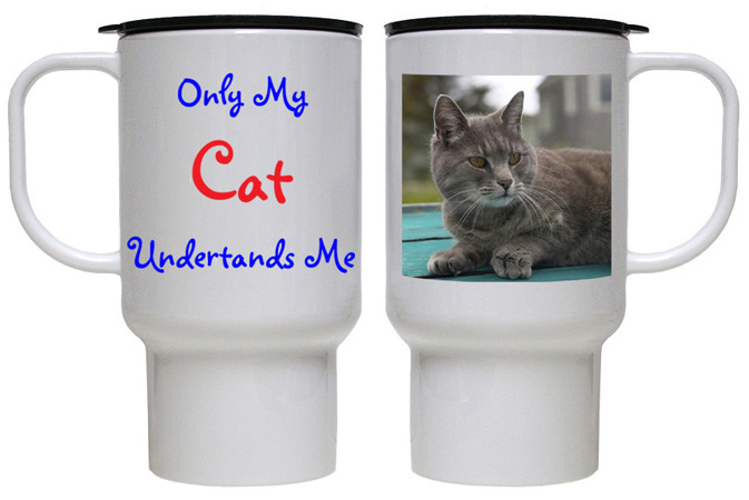 This 15 oz Travel Mug is made of a special bright white plastic polymer that makes it dishwasher and microwave safe. It features a beautiful Cat picture on one face with the saying Only My Cat Understands Me on the flip side. The Cat Travel Mug is lightweight, unbreakable and comes with a lid.