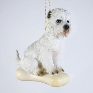 Kurt Adlers Dog on a Bone series of stone resin ornaments offer a striking representation of a West Highland Terrier to hang in your tree or anywhere in the house. These outstanding dog holiday decorations make great gift items or will become a beautiful part of your Christmas tradition. The Dog on a Bone West Highland Terrier Ornament measures about 4 inches.