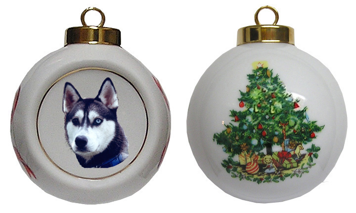 Porcelain Ball Christmas Ornament - Siberian Husky