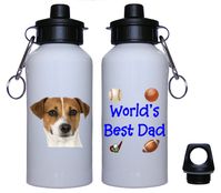 The 600ml White Aluminum Jack Russell Terrier Worlds Best Dad Water Bottles are the perfect size to bring to sporting events, to take on long walks, or to give as a Jack Russell Terrier gift. It features a colorful Jack Russell Terrier on one side with the saying Worlds Best Dad one the other side. The water bottle comes with 2 cap fixings. One cap is a flip top stopper allowing you to drink from the bottle without removing the cap and the other screw top cap allows the bottle to be clipped to a belt and is supplied with a metal clasp.