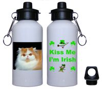 Celebrate all year long with our popular line of Irish themed Persian Cat decorated products. Our 600ml White Aluminum Persian Cat Irish Water Bottles are the perfect size to bring to sporting events, a parade, for taking beverages to school or to give as a Persian Cat themed gift. It features a colorful Persian Cat on one side with the phrase Kiss Me I’m Irish on the flipside. The water bottle comes with 2 cap fixings. One cap is a flip top stopper allowing you to drink from the bottle without removing the cap and the other screw top cap allows the bottle to be clipped to a belt and is supplied with a metal clasp. These White Aluminum Water Bottles are sturdy, lightweight and easy to clean.