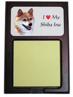 Shiba Inu Wooden Sticky Note Holder features a beautiful Shiba Inu image printed on an aluminum insert. Overall measures about 4 inches wide by 6 inches long. Complete with a 3 x 3 inch Post-it(R) Note Pad. It makes a great item for the home or office of dog lovers.
