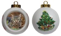 Porcelain Ball Christmas Ornament - Tabby Cat
