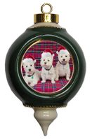 Ceramic Victorian Green & Gold Christmas Ornament - West Highland Terrier